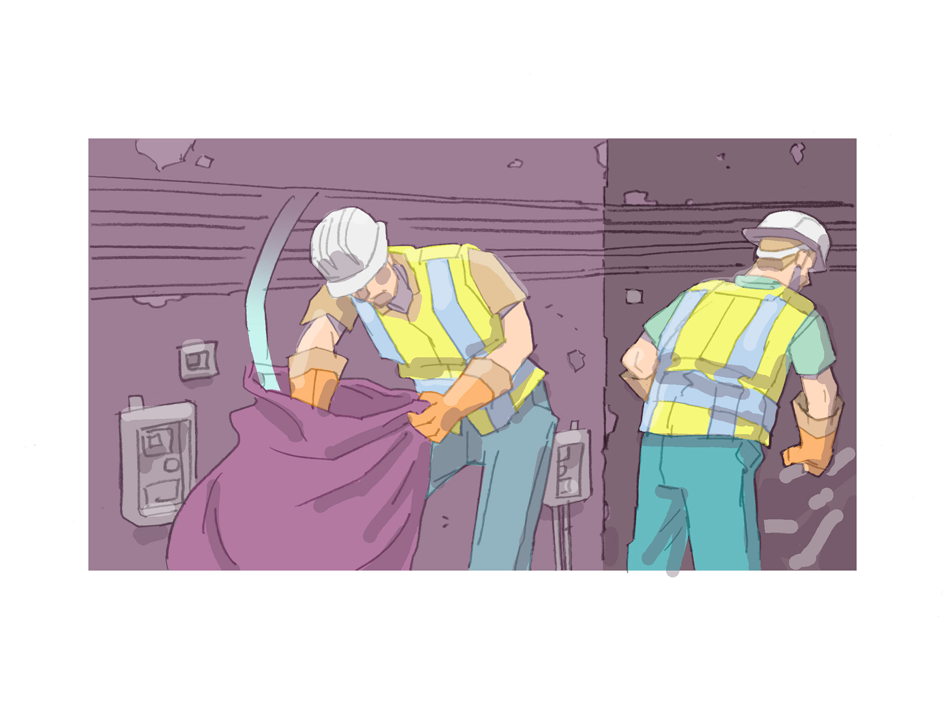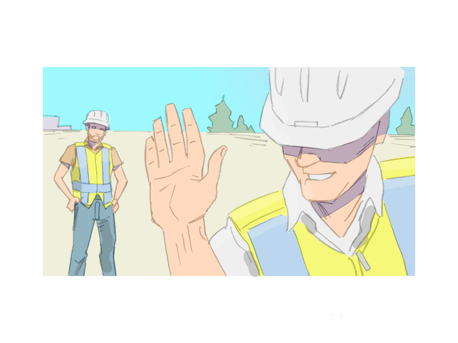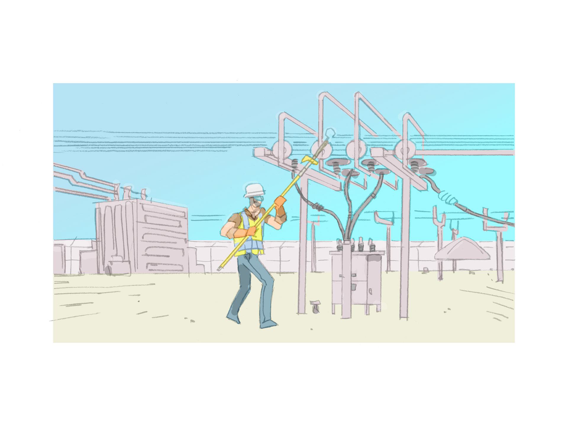 Key frame illustrations to accompany eyewitness testimonials to past incidents with a view to promoting safe working practice (in house).