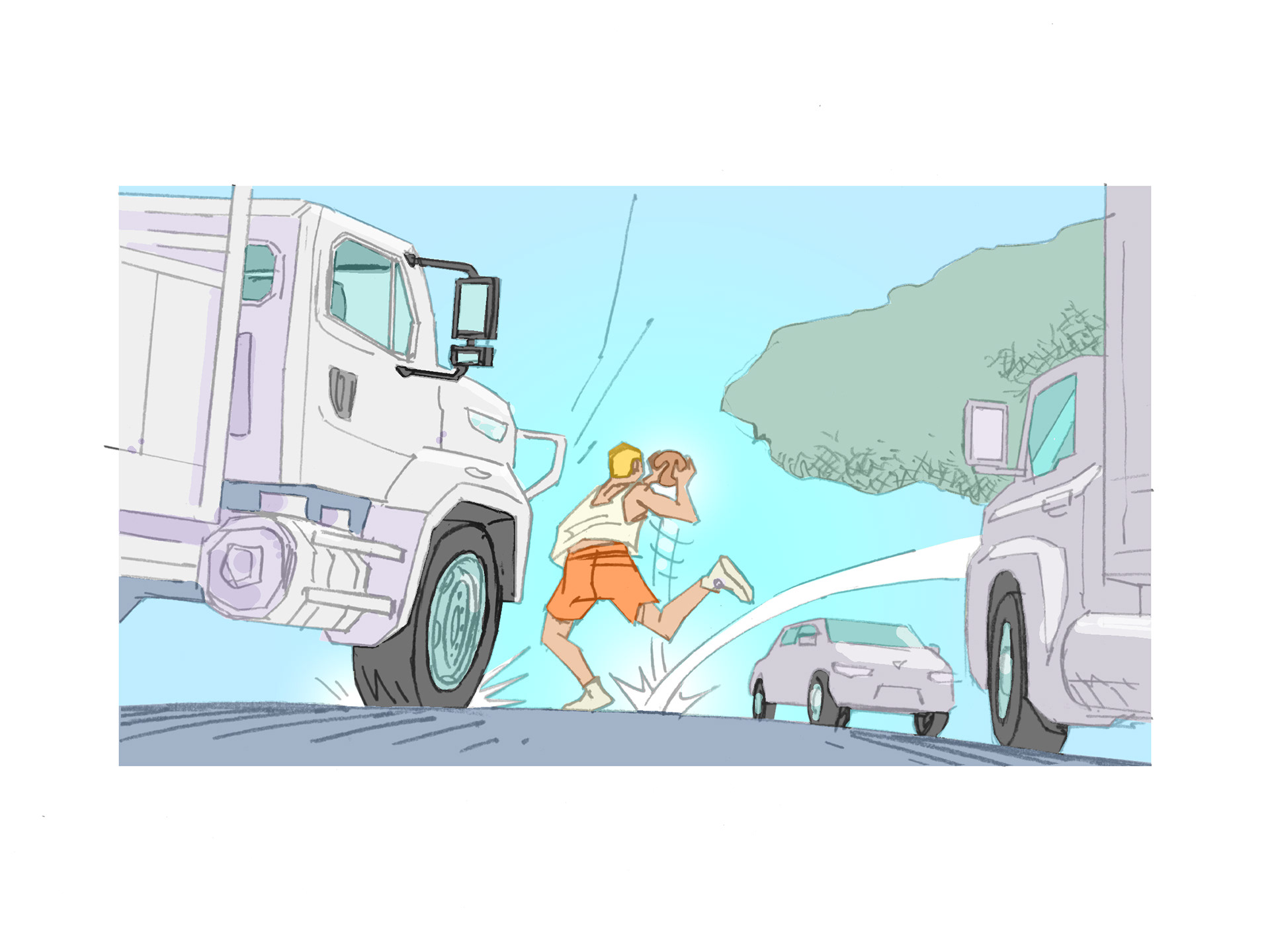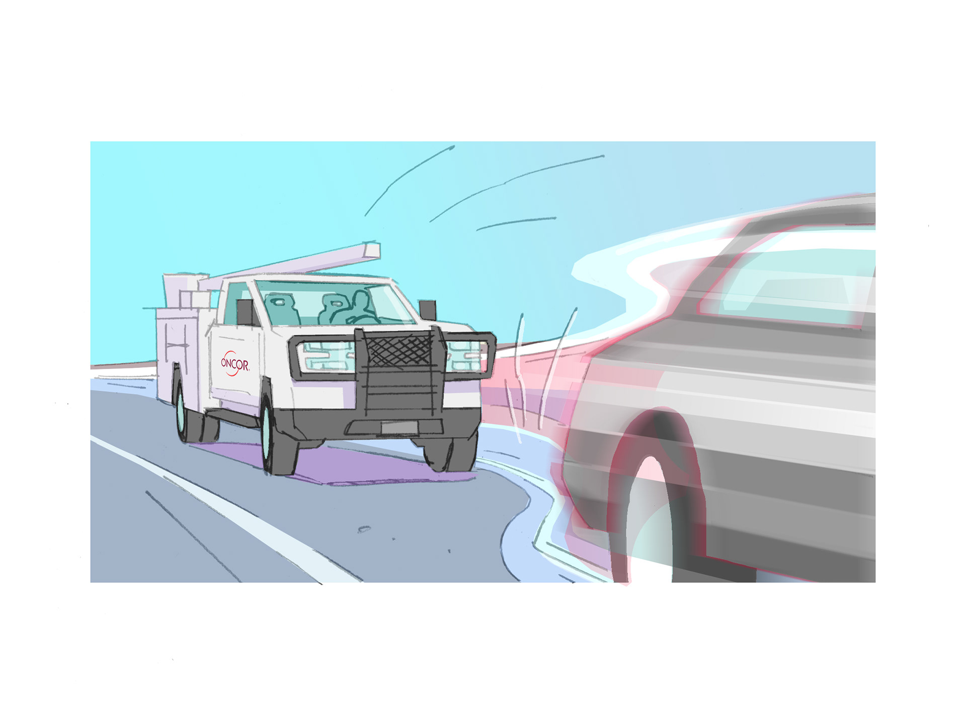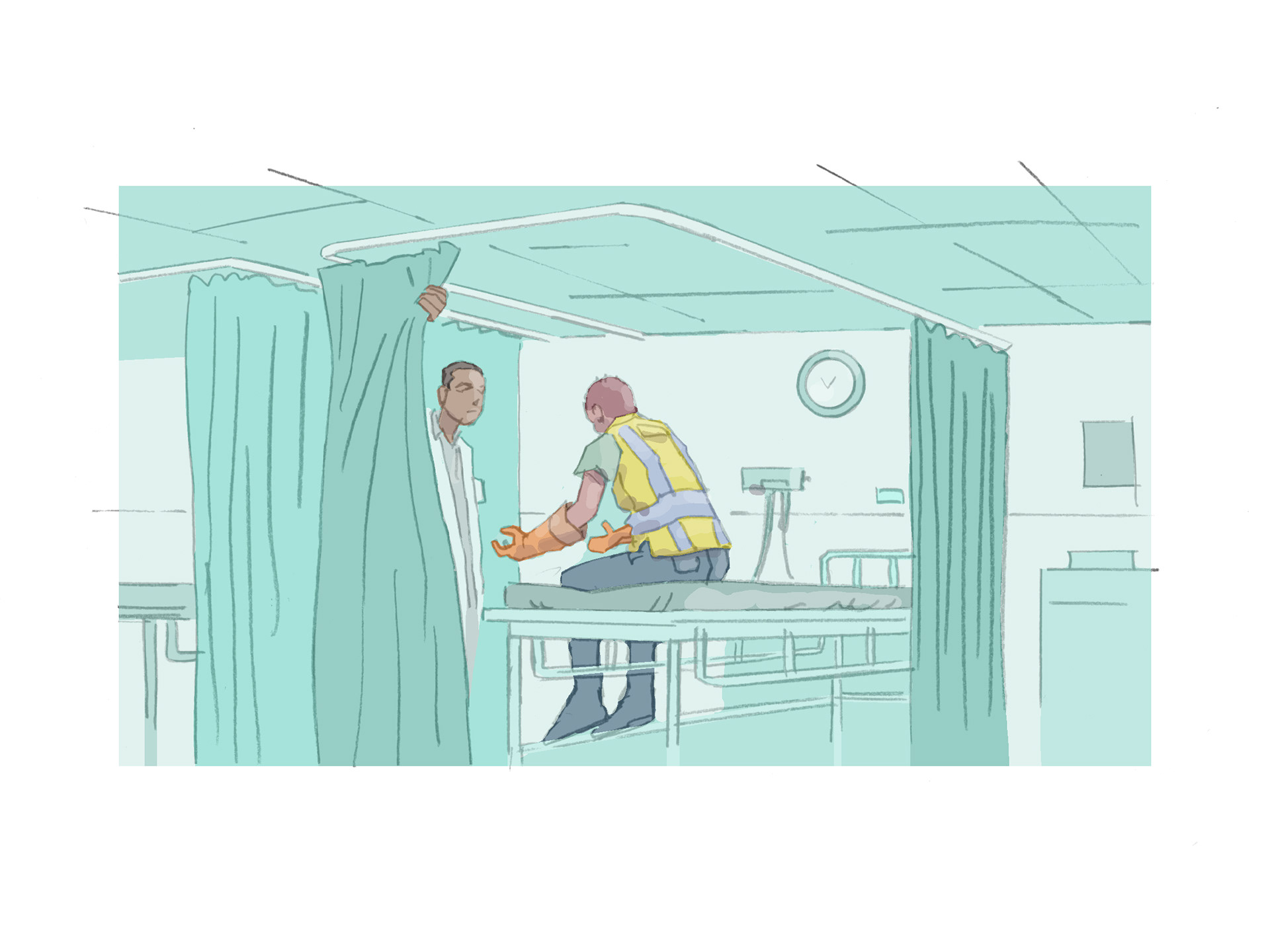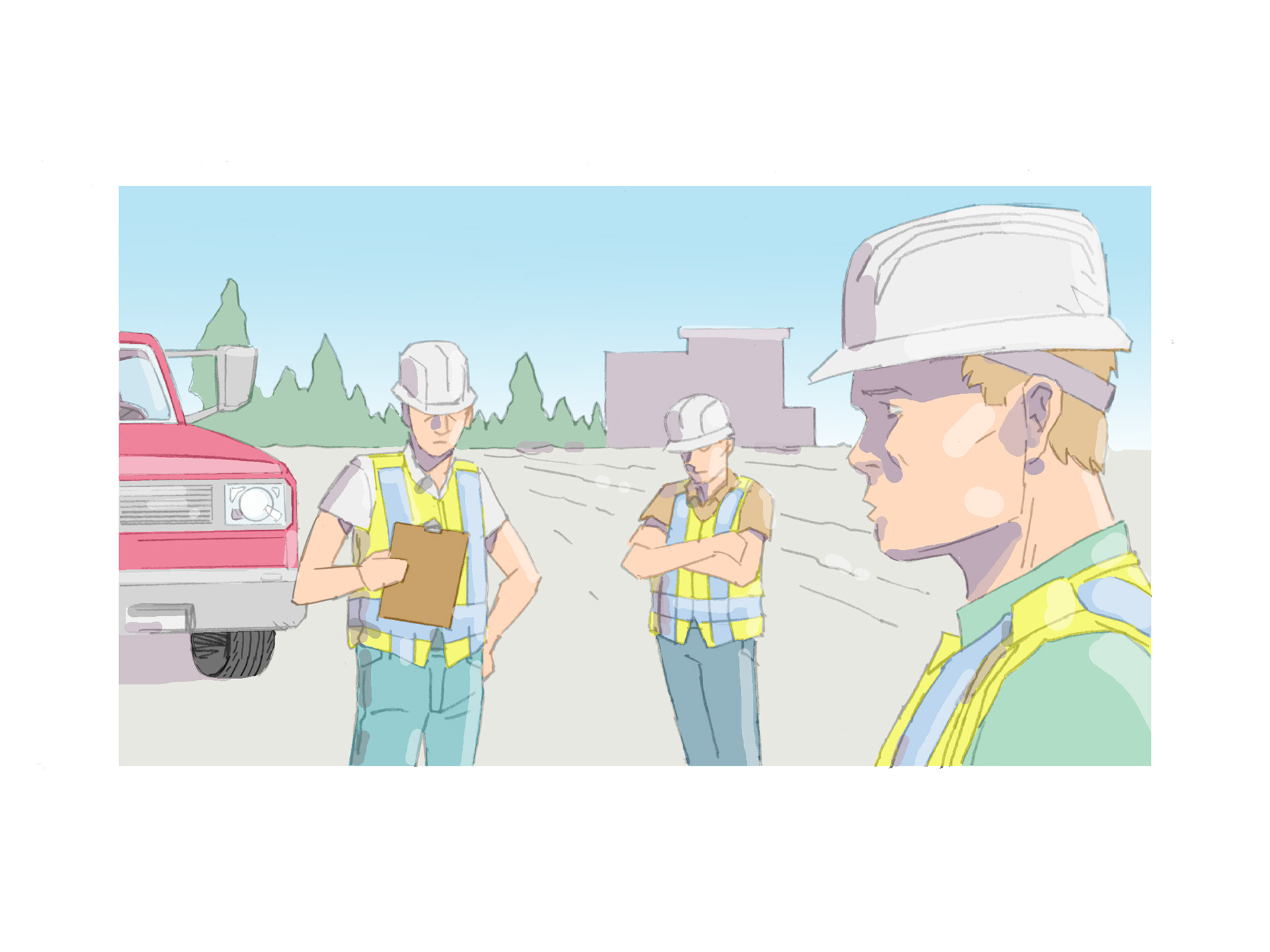 Key frame illustrations to accompany eyewitness testimonials to past incidents with a view to promoting safe working practice (in house).