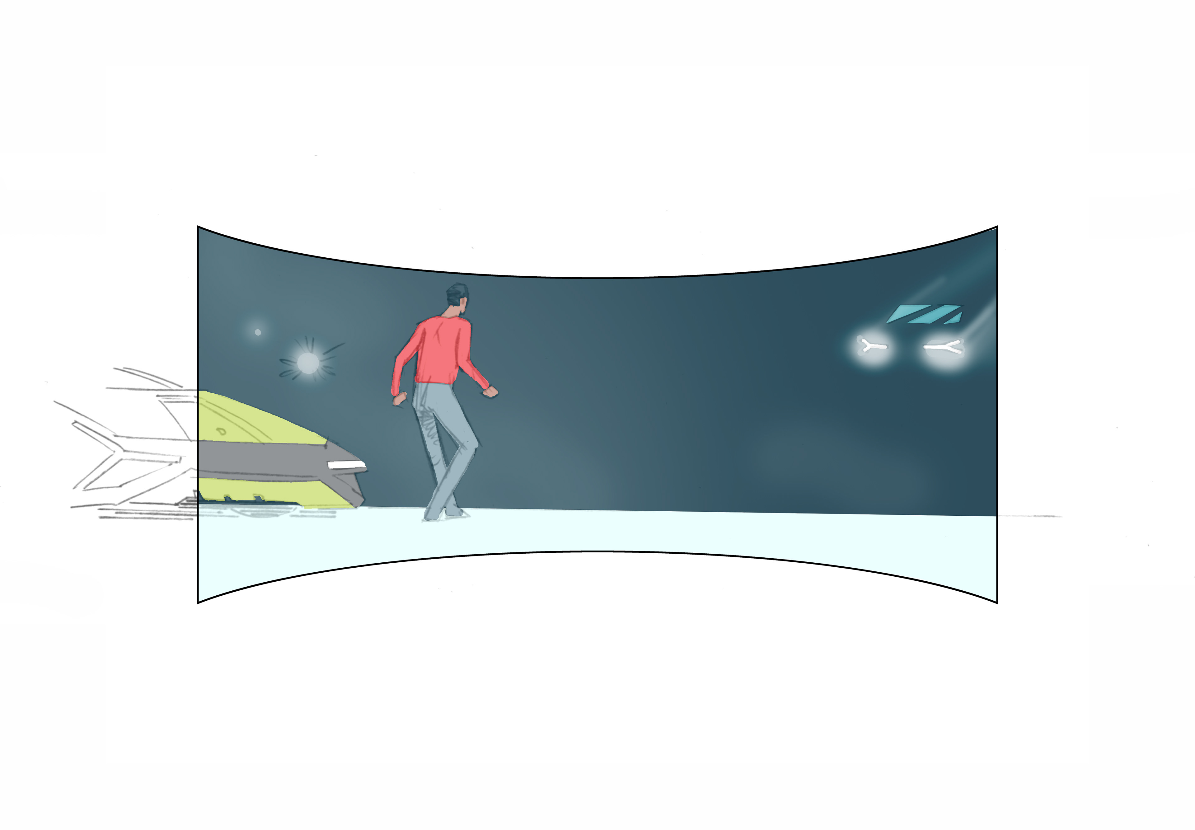 Concept development and storyboard for VR, app, and browser-based product launch experience, with Solarflare Studio.