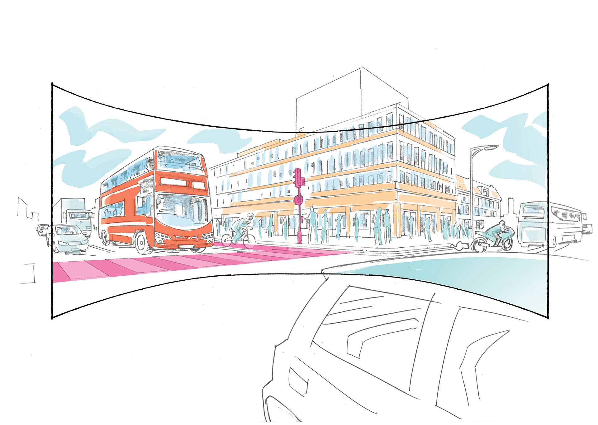 Presentation board for a 360˚ film for TRANSPORT FOR LONDON about safety awareness.